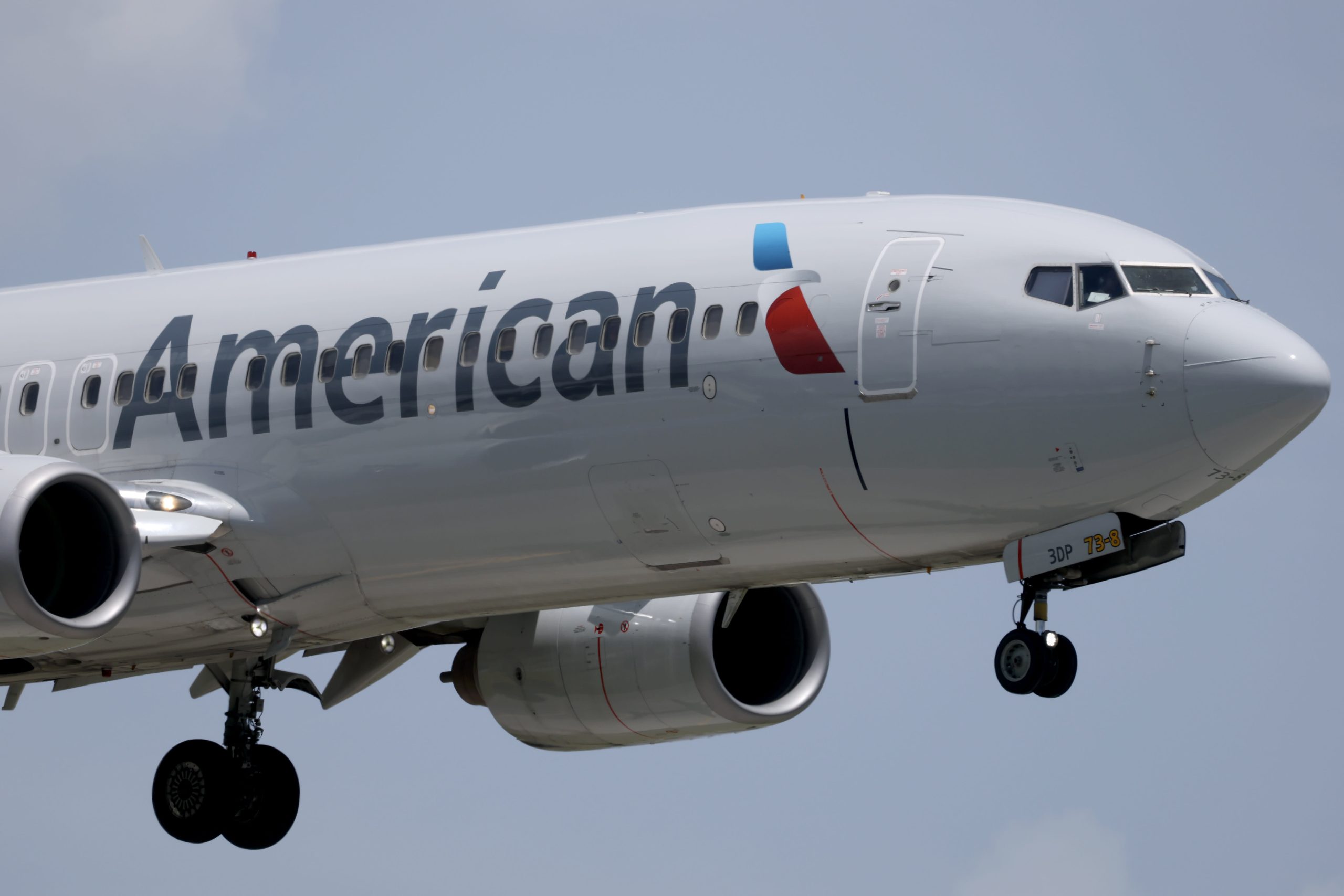An American Airlines plane lands at the Miami International Airport on July 24, 2025 in Miami, Florida.
