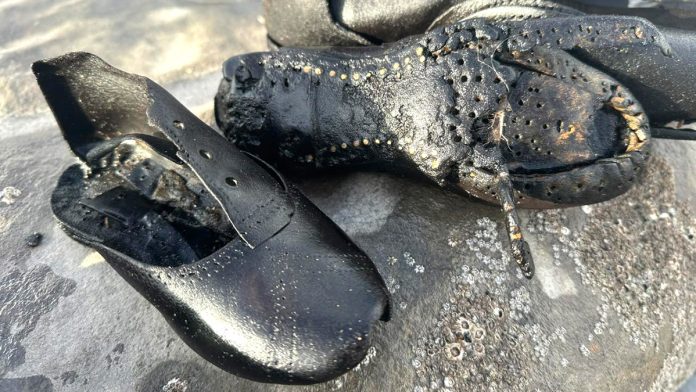 Volunteers working for the Beach Academy CIC, an educational center in Porthcawl, found the shoes on Dec. 18 during their efforts on a rock pool restoration project.