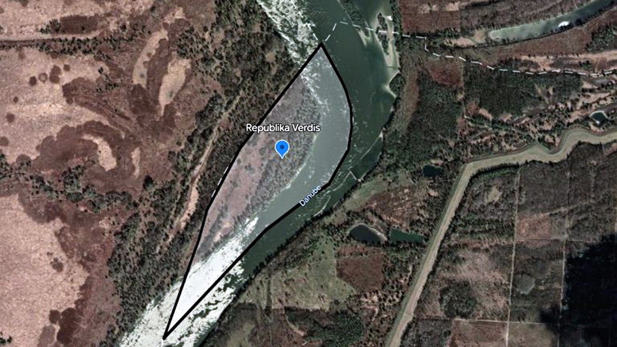 The Free Republic of Verdis, a sliver of forest along the Danube River, is shown above. “Founder” Daniel Jackson discovered the area was unclaimed by either neighboring country due to an ongoing border dispute. (Daniel Jackson / SWNS)