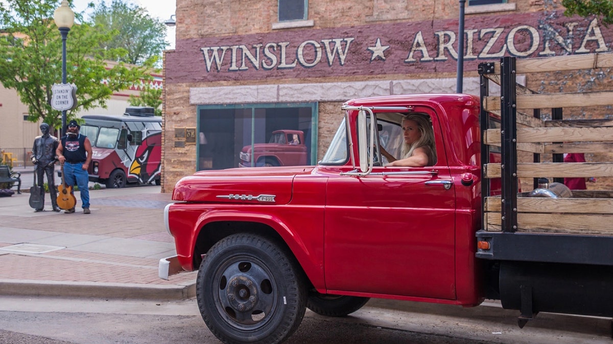 Winslow, Arizona was immortalized in “Take It Easy,” the debut single by the Eagles in 1972. Written by Jackson Browne, it memorably describes a girl “in a flatbed Ford slowing down to take a look” at a man “standing on a corner in Winslow, Arizona.” (Standinonthecorner.org)