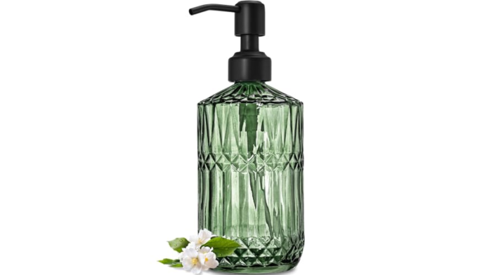 Between the bottle-green color, faceted design and matte black pump, this dispenser has the charm of a vintage find.