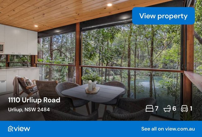 1110 Urliup Road has a price guide of $3.2 million to $3.5 million, with the sale being managed by agents Mark Ronan and Charles Milburn from Amir Prestige Group Byron Bay